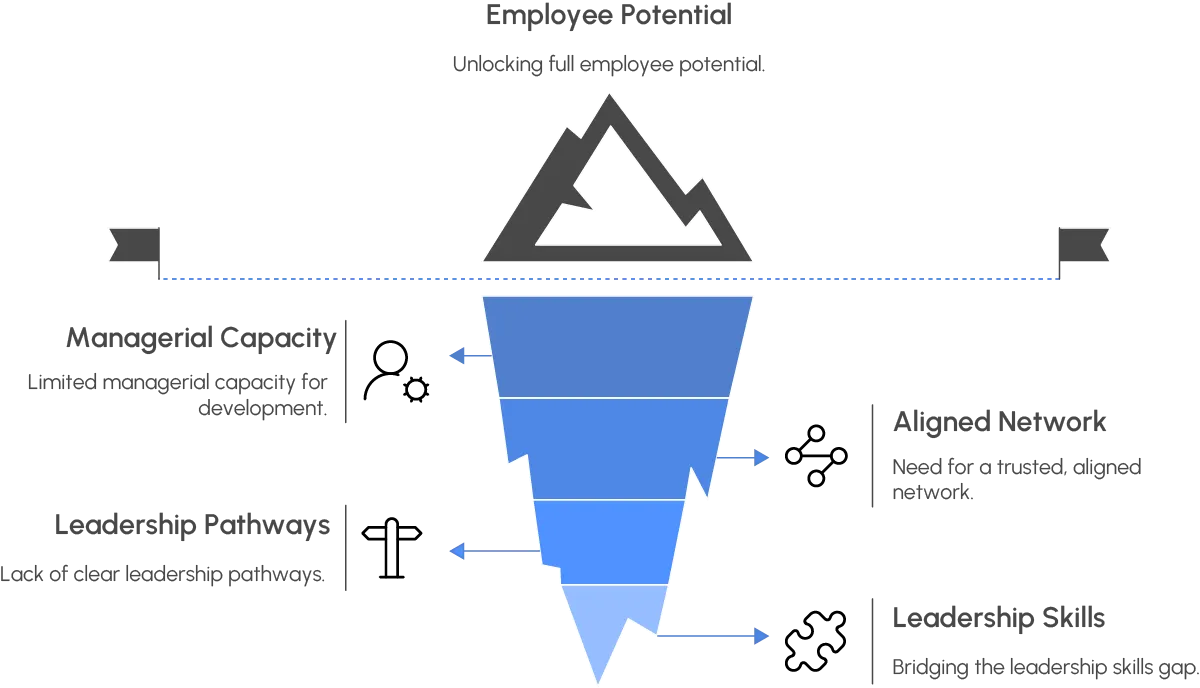 Many high-potential workers feel they are not unlocking their full potential due to a lack of development programs. As a manager, you understand the challenge of providing the focused development your high-potential staff need amidst competing priorities. You need a scalable solution that builds collective leadership, fosters collaboration, and creates a self-sustaining culture of growth within your organisation.